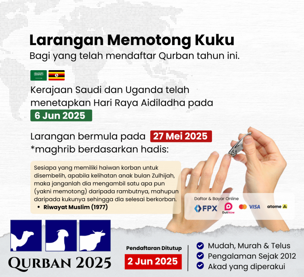 Sebagai umat Islam yang menghidupkan sunnah Nabi Ibrahim a.s. dan menzahirkan ketaatan kepada Allah s.w.t. melalui ibadah qurban, kita tidak boleh memandang ringan terhadap adab dan larangan yang datang bersamanya. Salah satu larangan penting—namun sering dilupakan—adalah larangan memotong kuku dan rambut bagi mereka yang telah berniat untuk melaksanakan qurban.